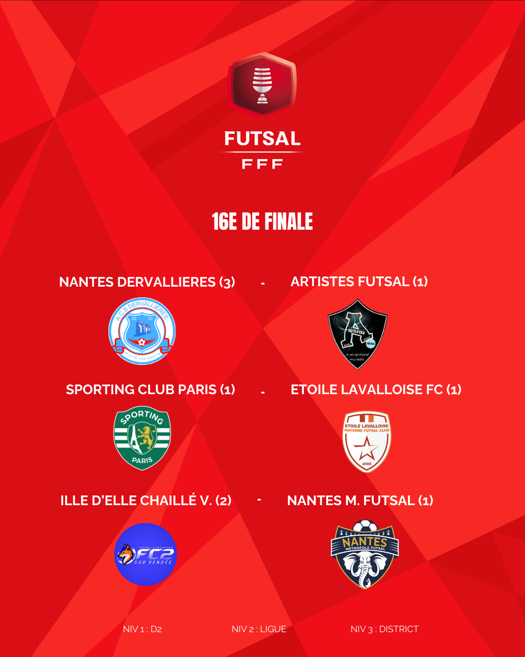 - Coupe Nationale Futsal – 16e de Finale