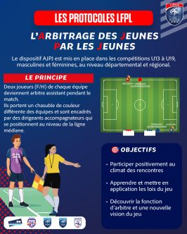 Mis en place sur les compétitions jeunes de U13 à U19, au niveau départemental et régional (sauf en cas de désignation d’un trio arbitral officiel), ce dispositif permet aux jeunes joueurs de participer directement à l’arbitrage des rencontres en occupant le rôle d’arbitres assistants. Concrètement, au moins deux joueurs par équipe officient le long de la ligne de touche lors de chaque match et assistent l’arbitre central tout au long de la rencontre.