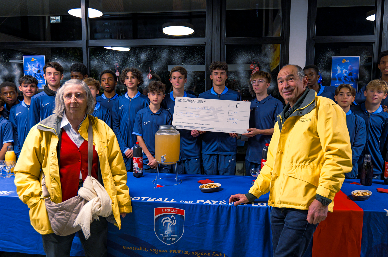Ce mercredi 10 décembre 2025, le Pôle Espoirs de la Ligue de Football des Pays de la Loire a vécu un moment fort et symbolique, Centre Sportif Régional de la Ligue, avec la remise d’un chèque de 1 400 euros au profit du Téléthon. Ce don est le résultat de la course solidaire organisée mi-novembre, un événement qui a mobilisé joueurs, familles et encadrants autour d’une cause essentielle.