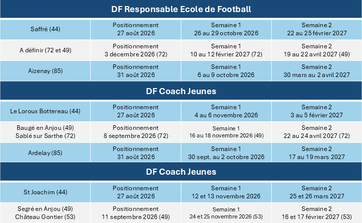 Dans le cadre de son projet de développement et de sa volonté d’accompagner toujours mieux les clubs et leurs éducateurs, la Ligue de Football des Pays de la Loire met en place, dès la saison prochaine, une nouvelle stratégie territoriale de déploiement des formations bénévoles, et notamment des Diplômes Fédéraux (DF).