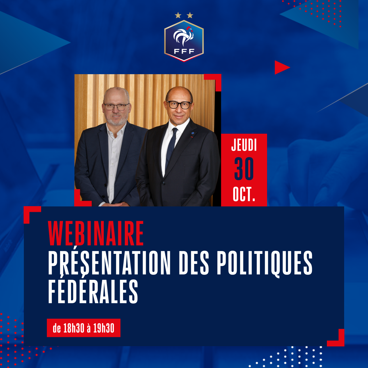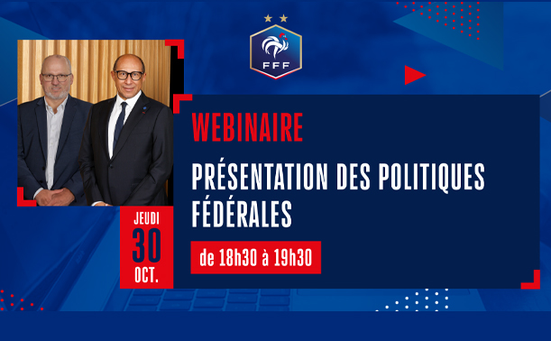 A cette occasion, les Présidents des clubs concernés sont conviés à assister à un webinaire qui présentera les Politiques Fédérales en présence de Monsieur Philippe Diallo et Monsieur Claude Delforge.